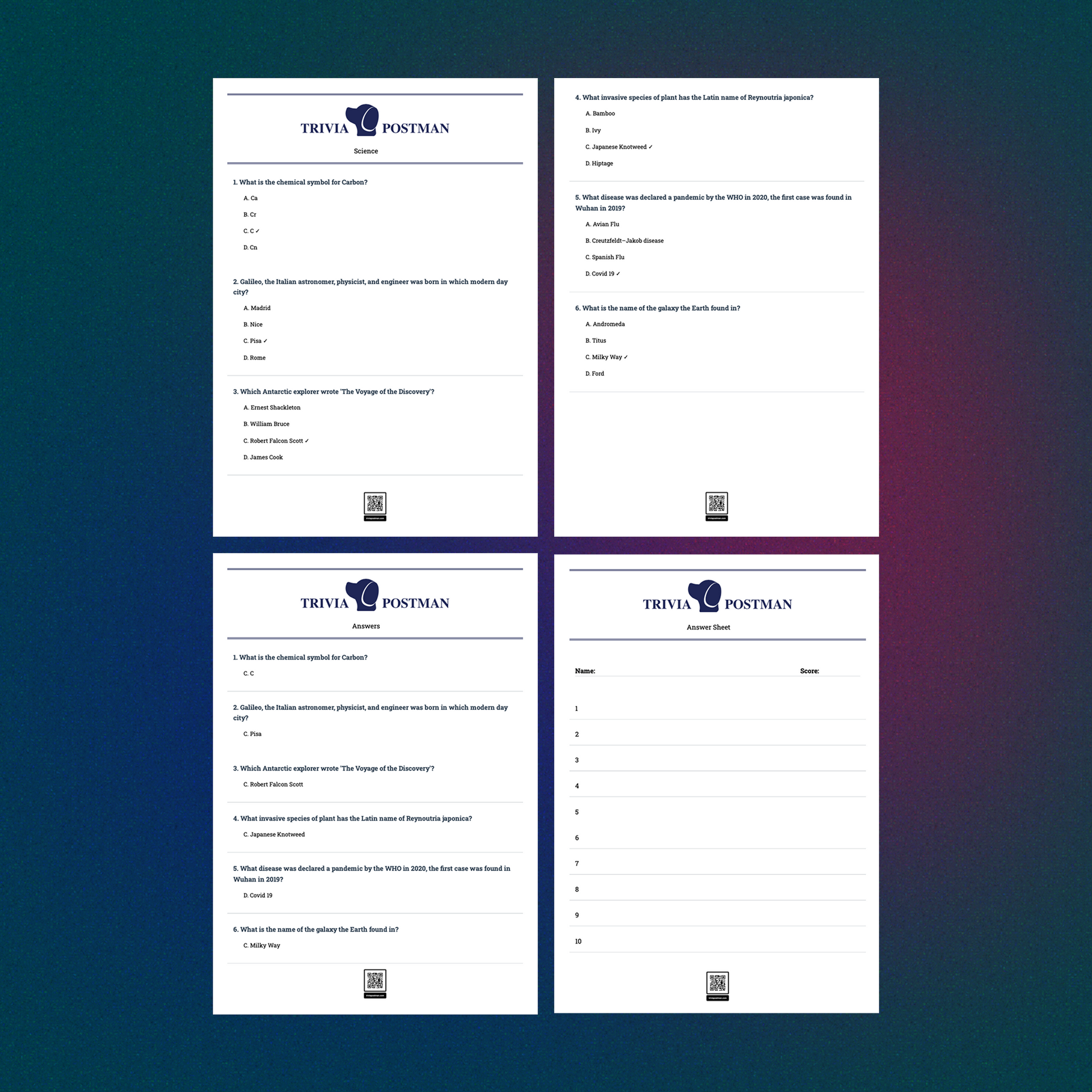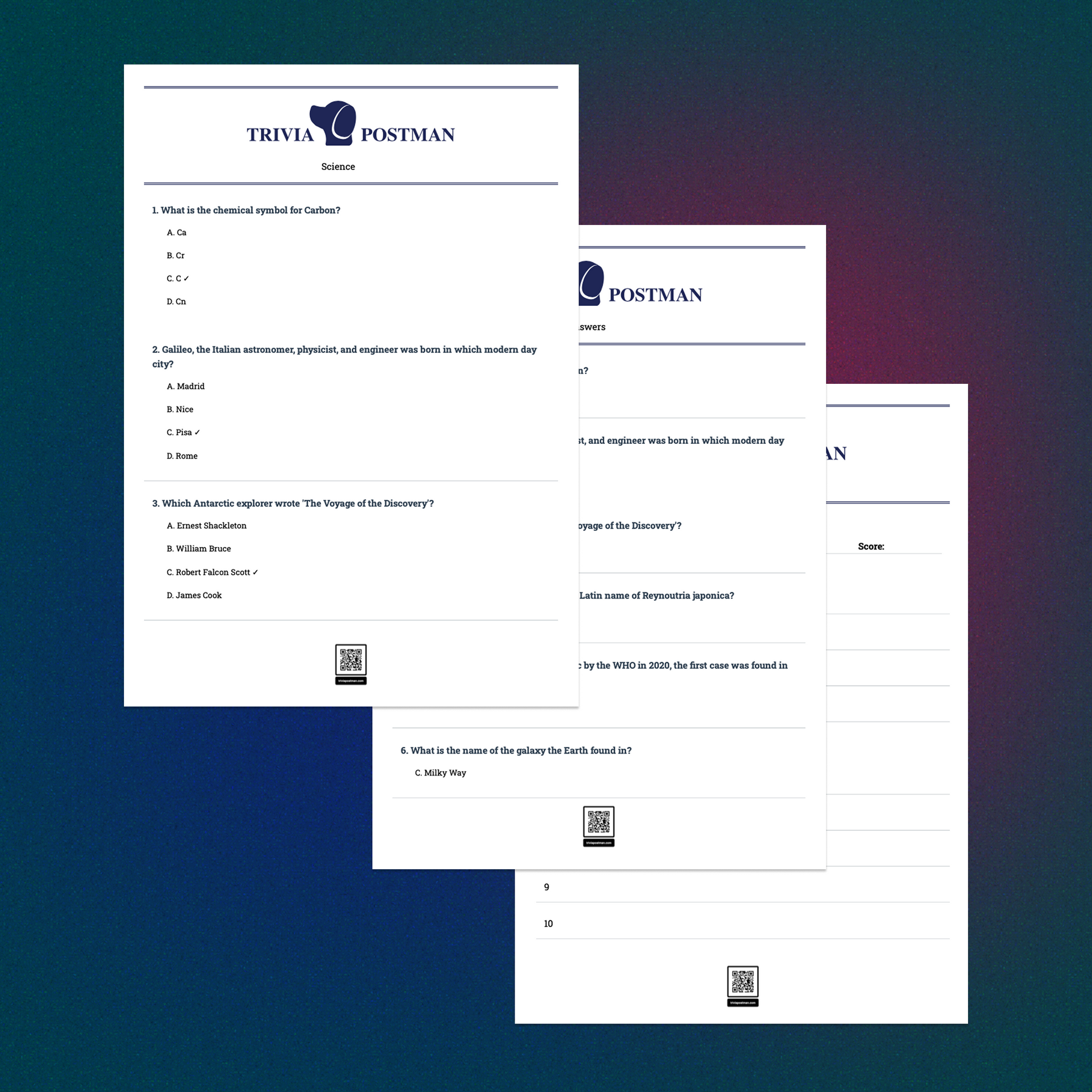 Here at TriviaPostman we have curated a quiz of 30 science trivia questions for you. It is perfect for trivia nights, family games, classrooms quizzes, and science lovers. This science quiz covers a wide range of topics; including biology, chemistry, and space.